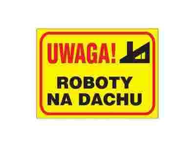 ZNAK BHP UWAGA ROBOTY NA DACHU