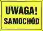 Znak: UWAGA! SAMOCHÓD - znaki BHP - hurtownia