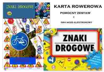 Zestaw do nauki przepisów ruchu drogowego: A. 4 plansze o wymiarach 31x 44 cm (dwustronnie laminowane): 1. Znaki ostrzegawcze 2. Znaki informacyjne 3. Znaki nakazu 4. Znaki zakazu B. 150 sztuk kartoników zawierających wizerunek znaku drogowego i jego opis na rewersie Kartoniki dwustronnie laminowane C. Broszura formatu A5/ 16 stron Kodeks drogowy dla rowerzystów