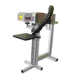 Wersja znakowarki wyposażona duży statyw + stół ruchomy ( automatyczny podajnik + wymienne tacki ). Taka konfiguracja umożliwia zwiększenie pola pracy bądź automatyczne seryjne znakowanie większej ilości elementów np. zakrętek, długopisów, pendrivów itp.