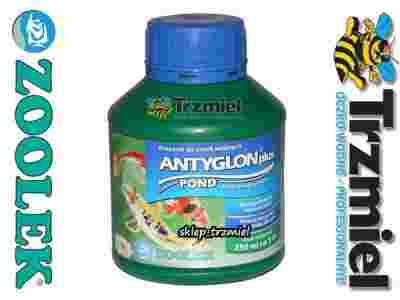 Antyglon firmy ZOOLEK. Bezpośrednio przed jego zastosowaniem dobrze jest usunąć mechanicznie, możliwie dużo glonów pływających po powierzchni stawu. Następnie należy dodać 50 ml preparatu na każde 1000 litrów wody. Równolegle konieczne jest obfite napowietrzanie oczka wodnego. W ciągu kilku dni glony zamierają, zaś woda odzyskuje klarowność. Aby utrzymać osiągnięty efekt zaleca się okresową kontrolę podstawowych parametrów wody, a w szczególności poziomu azotanów i fosforanów, których nadmierna ilość sprzyja niekontrolowanemu rozwojowi glonów. Preparat można stosować profilaktycznie (w celu zapobiegania wystąpienia glonów), wtedy należy dodać