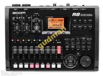 Zoom R8, combined 8-Track Multitrack SD-Card Recorder, USB-Audiointerface 24-Bit/96KHz, DAW Controller and 24-Voices Pad-Sampler. Recorder: 8-Track-Playback, 2 Track Recording at the same time, 2x XLR/1/4" TR Inputs with 48-V-Phantom Power, over 150 DSP-Effects, recording on SD/SDHC-Cards up to 32 GB WAV-Format with 44,1/48 kHz with 16 or 24 Bit, build-in Stereo-Mic, current supply via Battery (4 x AA), USB or included Power Supply, two R8-Units can be combined via USB, incl. 2 GB SD-Card, 1.5 GB Drum-Loops, Steinberg Cubase LE DAW Recording Software for Mac/PC.