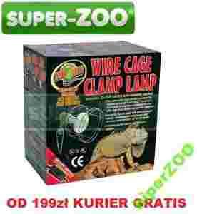 WIRE CAGE CLAMP LAMP firmy ZooMed (art. nr LF-10) to porcelanowa oprawa z uchwytem zaciskowym doskonała do instalacji z żarówkami i promiennikami w terrarium dla gadów. Przeznaczona jest do użycia na zewnątrz terrarium - nad pokrywą lub w metalowych, drucianych terrariach dla legwanów. Nie można jej stosować wewnątrz terrariów lub klatek dla zwierząt. Podczas instalacji upewnić się, czy lampa jest dobrze zamocowana do terrarium. Chronić przed dziećmi. Unikać przegrzania terrarium. Stosować żarówki i promienniki o właściwej mocy dobranej do rozmiaru terrarium.Oprawa jest przeznaczona do żarówek lub promienników o mocy nie większej jak 150 Wat.