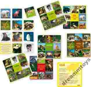 Witamy w krainie zwierząt. Spotkasz tutaj pandę, lwa i wiele, wiele innych przedstawicieli świata fauny. „Zwierzęta świata” to pouczająca loteryjka przyrodnicza, która poszerza wiedzę młodego człowieka na temat otaczającego go świata. W skład loteryjki wchodzi: 6 różnych plansz-kontynentów, 54 twarde, dwustronne kartoniki, na których widnieją rzeczywiste zdjęcia zwierząt. Dzięki grze dziecko w łatwy sposób zapozna się z rodzajami zwierząt, jakie występują na różnych kontynentach. Dodatkowo na odwrocie kartoników znajdują się opisy zwierząt i ich cechy charakterystyczne. Młody człowiek nie tylko poznaje podstawy wiedzy o geografii świata, ale również bawi się i rywalizuje z konkurentami. Zestaw gry zawiera: - 6 różnych plansz-kontynentów, - 54 twarde, dwustronne kartoniki z wizerunkami zwierząt.