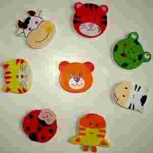 zwierzęta, drewniane samoprzylepne, 9 sztuk
